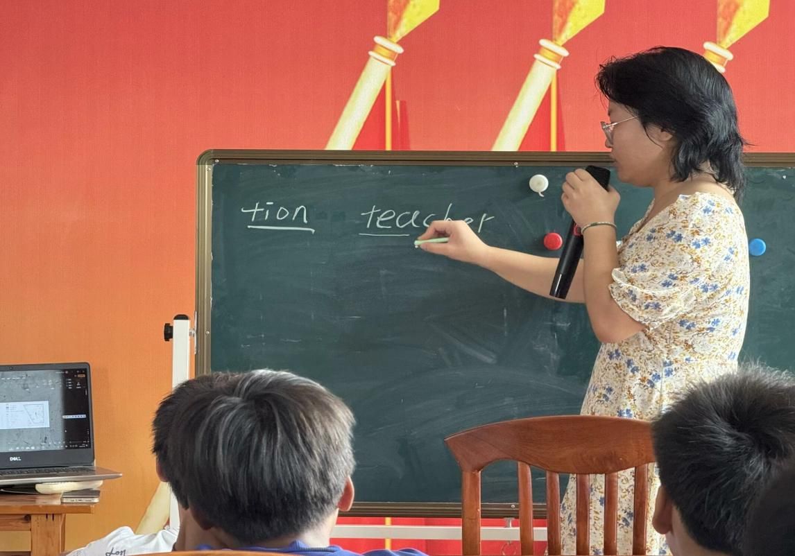(张雨婷)在广西壮族自治区贺州市平桂区鹅塘镇湴田村村民委员会的支教实践过程中,通过与湴田村第一驻村书记吴佳林深入沟通后,永利3044noc集团官网星辰社贺州支教志愿服务队了解到当地学生的英语水平普遍不高,甚至连基础的英语音标都不会读,基于此种情况,在原有的基于智育、美育、体育的趣味课堂的基础上,新增英语专题课。7月10日,志愿者老师陈诺为同学们带来第一节英语课。