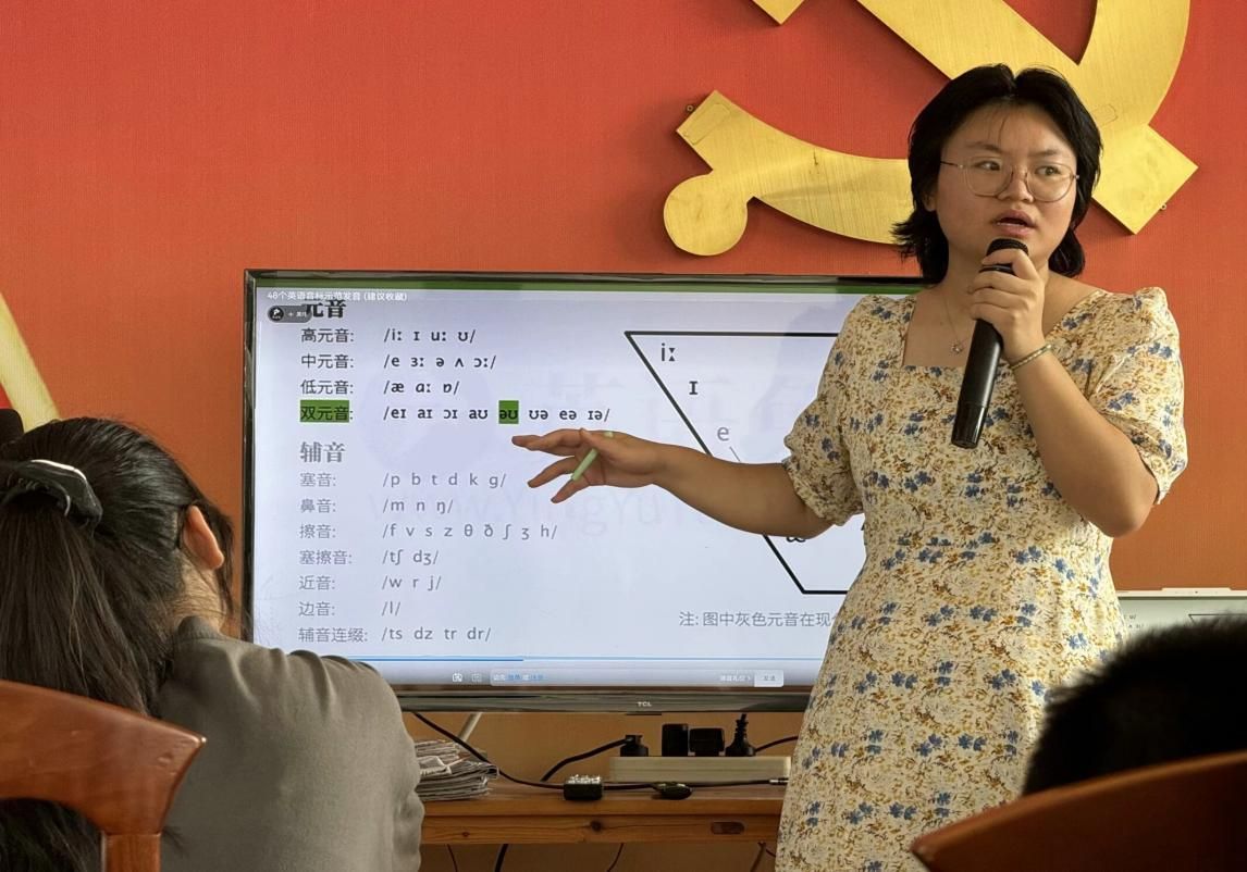 “在全球190多个国家中,有110多个国家以英语为官方语言,所以,英语的学习是很关键的……”陈老师为同学们这样科普,同时着重强调了学习英语的重要性。考虑到同学们的英语水平,她决定从最简单的国际音标开始教起,希望这两周的英语学习能够让他们认识音标、学会音标、自我认读单词,从而激发他们学习英语的兴趣,培养自主学习能力。