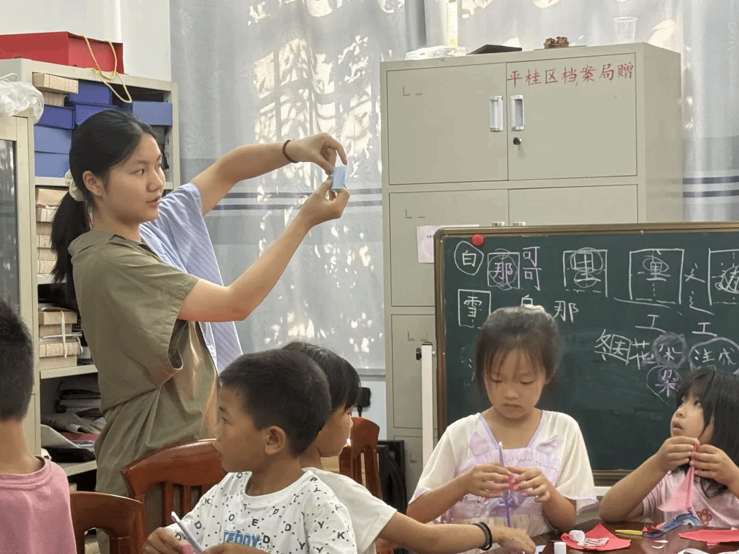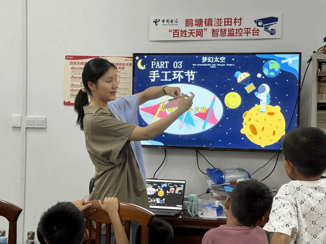 支教队员刘怡琳用生动有趣的方式,为孩子们揭开了航天领域的神秘面纱。从宇宙的浩渺到航天器的精妙构造,再到航天英雄的英勇事迹以及太空探索的深远意义,刘怡琳的讲解深入浅出,如同一串串闪耀的星辰,点亮了孩子们好奇的眼眸。课堂上,孩子们全神贯注,沉浸在航天的魅力之中,时而惊叹,时而沉思,那一颗颗幼小的心灵被航天的伟大深深触动。