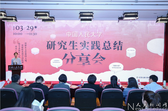 3月29日上午,中国人民大学研究生实践总结分享会举办,中国人民大学党委常委、副校长王易出席。“治国理政”实岗锻炼计划一期学员、理学院2021级硕士研究生闫芸担任主持人。