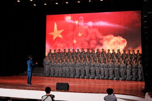 法学学部新生合唱团倾情演绎,铁板歌喉,齐唱时,歌声激昂,唱出中华儿女保卫祖国的决心;轮唱时,此起彼伏,一浪高过一浪,恰似黄河的波涛滚滚奔流,势不可当。23级法学院研究生郭泳杉激扬的钢琴伴奏,合唱指挥梁绍峰富有感染力的指挥,引起现场观众赞叹,结束后场下仍掌声不断。最终法学学部不负众望,在百人大合唱中斩获第一名!